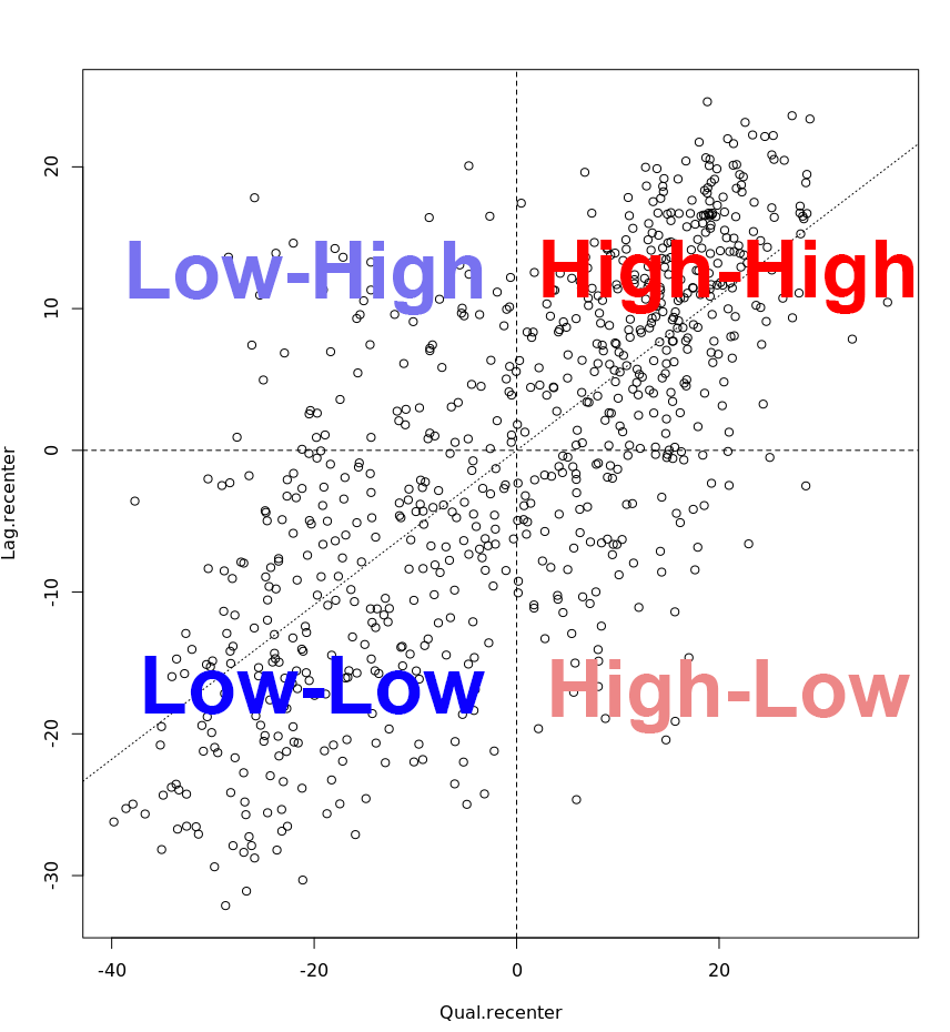 quadrant[Qual.recenter >0 & Lag.recenter>0] <- 4 #HIGH-HIGH TOP RIGHT