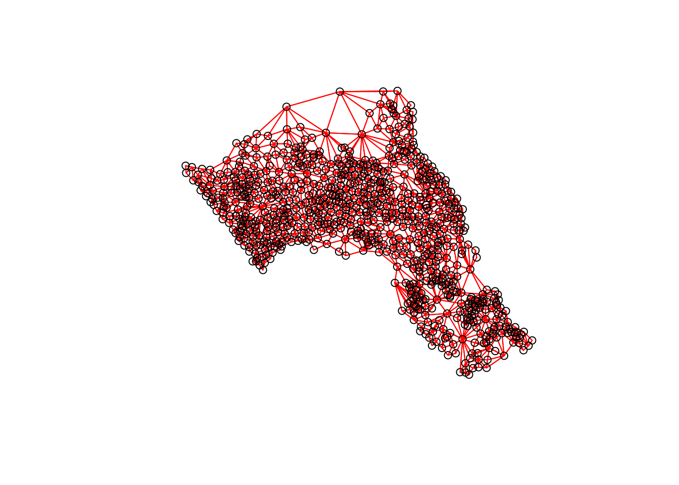 plot(nb, st_geometry(oa_centroid), col='red')