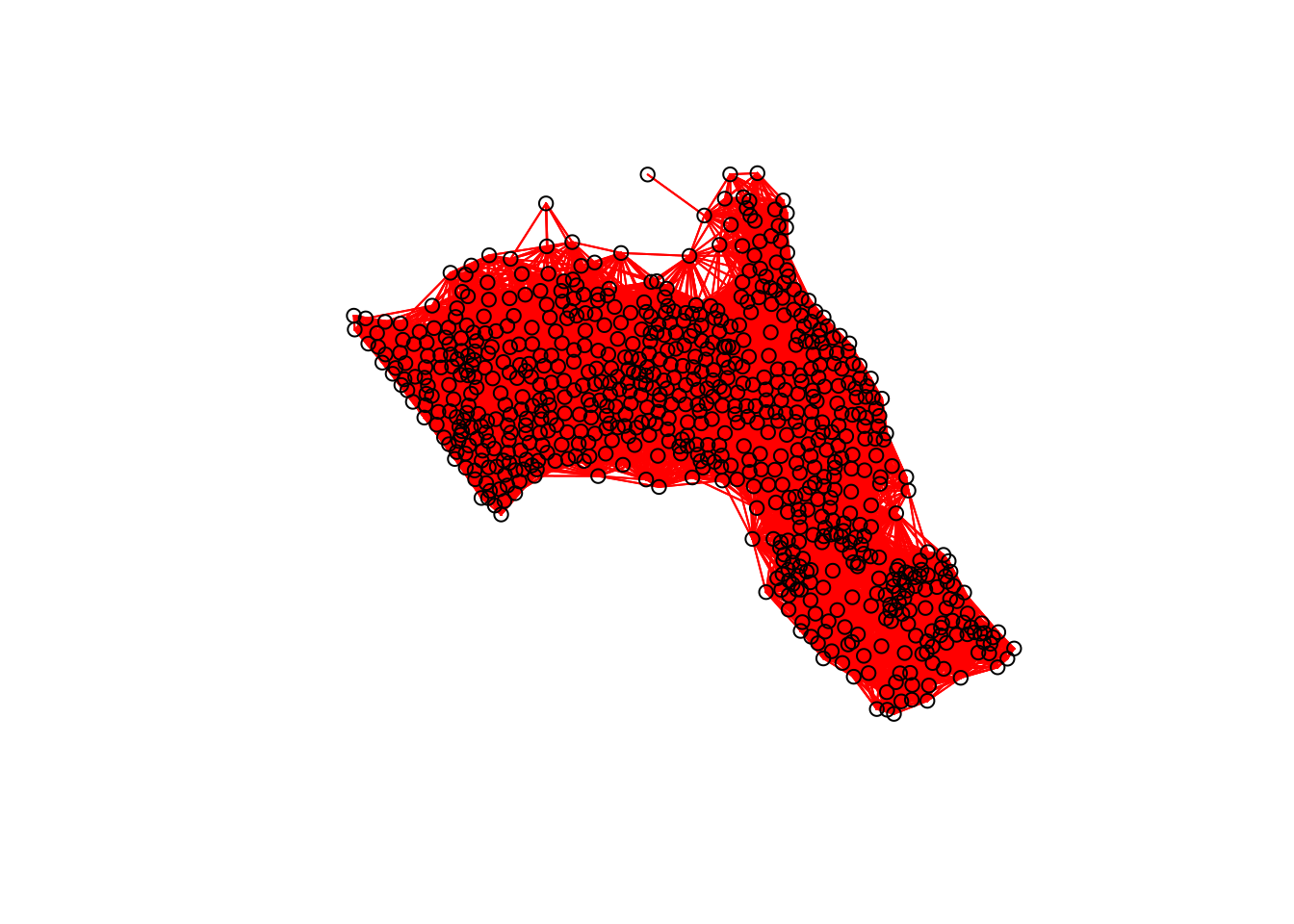 plot(neighbours2, st_geometry(oa_centroid), col='red')