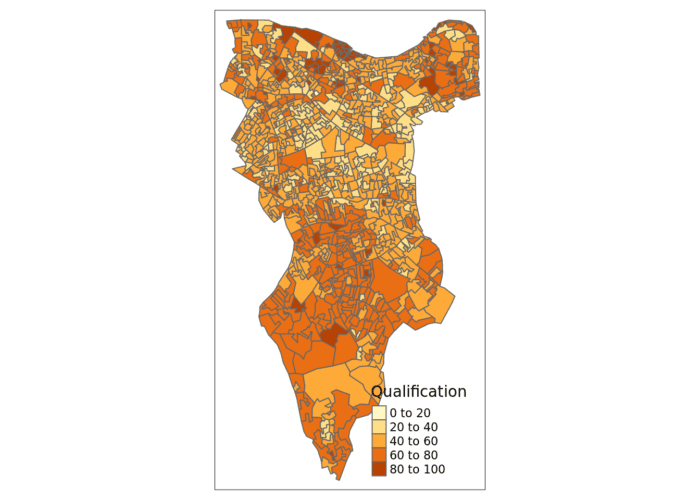 Now we add the ethnicity, unemployment, qualification variables etc to the spatial object. This requires another merge.