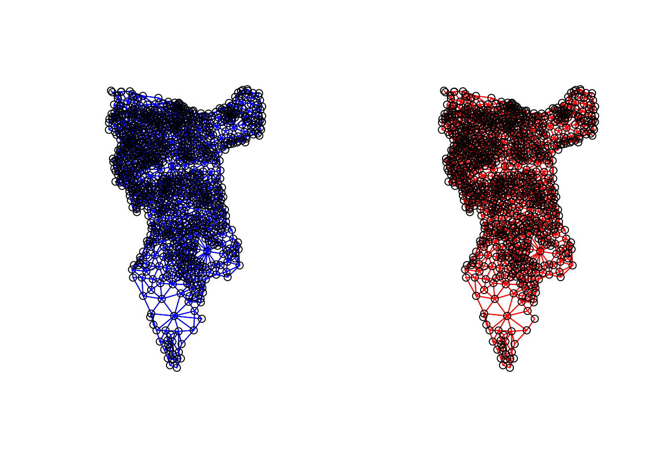 We can already see that this approach has identified fewer links between neighbours. By plotting both neighbour outputs we can interpret their differences.